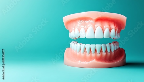 Obraz premium Detailed 3D Render of Human Teeth and Gums on Teal Background