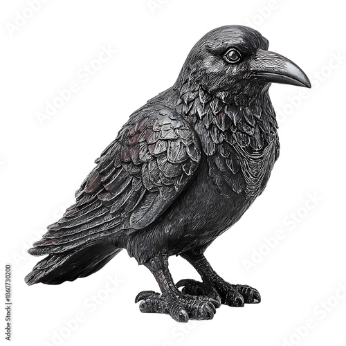 © Novian, Fototapeta premium Detailed dark metallic raven figurine with textured feathers and claws