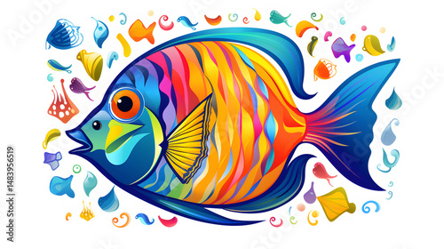 © Touch, Naklejka premium Detailed degraded outline design of tropical fish animal and heart on a textured background