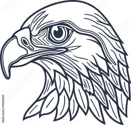 Obraz premium Detailed eagle head illustration with sharp beak and feather pattern in...