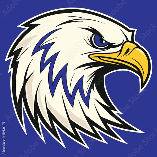 © Kingkor, Fototapeta premium Detailed Eagle Head Vector Mascot Illustration on a Blue Background