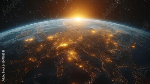 © Alexey, Fototapeta premium Detailed Earth View Highlighting Europe and Africa at Night. Generative AI