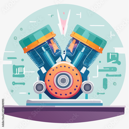 Obraz premium Detailed engine illustration in a circular design with a machine-like,...