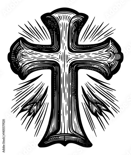© Meli, Obraz premium Detailed Engraving of Decorative Cross with Radiant Outline