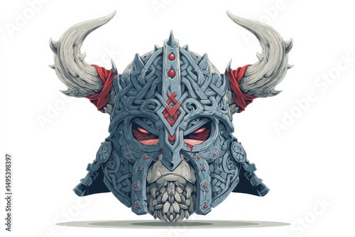 Naklejka premium Detailed fantasy helmet design featuring intricate carvings and bold horns...