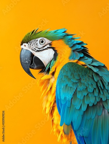 © Anas, Fototapeta premium Detailed Feather Texture of a Blue and Yellow Macaw