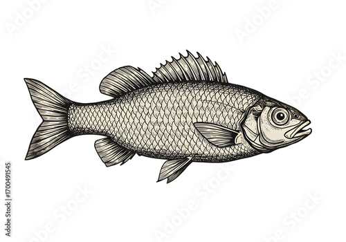 © Deanna, Fototapeta premium Detailed Fish Illustration in Black and White Isolated On Transparent Background