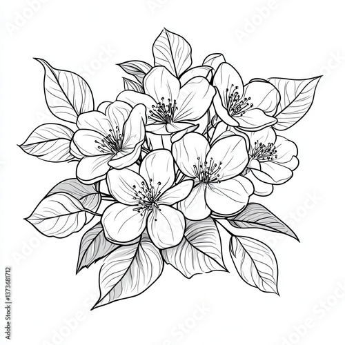 Fototapeta premium Detailed floral illustration featuring blooming flowers and leaves in a...
