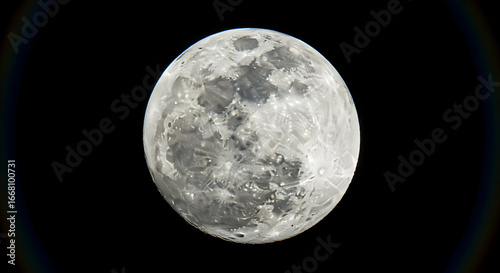 Obraz premium Detailed Full Moon Close Up Shot Against Black Background.