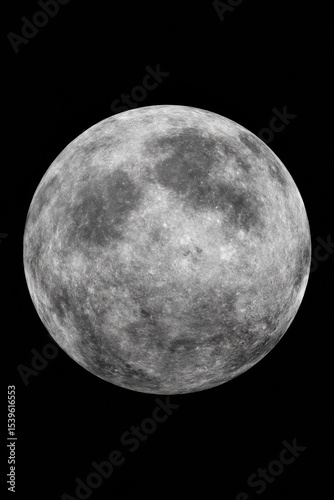 © Ryzhkov, Obraz premium Detailed Full Moon Isolated on Transparent Background with Visible Craters and Texture for Astronomical Science and Space Exploration Projects