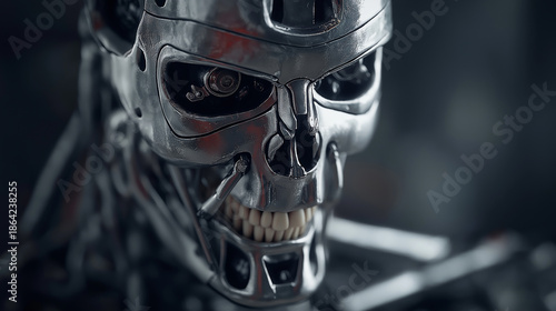 Fototapeta premium Detailed futuristic cyborg skull revealing advanced mechanical structure and artificial intelligence.
