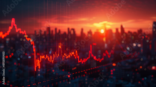 Naklejka premium Detailed graph of fluctuating real estate prices against a cityscape...