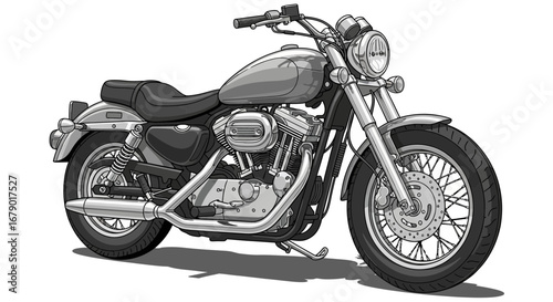 © Agil, Fototapeta premium Detailed grayscale illustration of a classic vintage motorcycle design