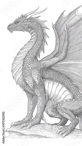 © Npicture, Obraz premium Detailed grayscale illustration of a mythical creature.