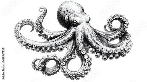 © Ayu, Obraz premium Detailed grayscale illustration of an octopus