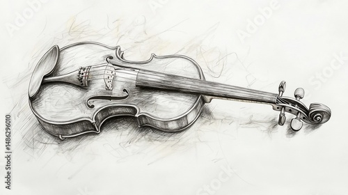 © Adine, Obraz premium Detailed grayscale pencil sketch of a classical violin