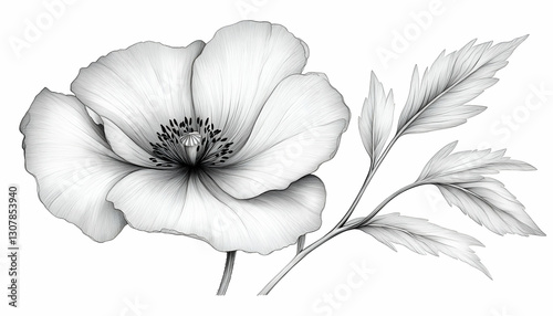 Fototapeta premium Detailed grayscale poppy illustration (1)