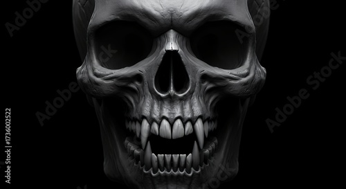 © SULIS, Obraz premium Detailed grayscale rendering of a human skull against a dark background