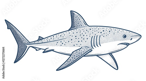 Fototapeta premium Detailed hand-drawn shark illustration in vintage style
