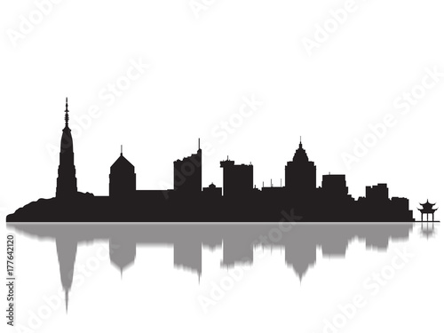 Fototapeta premium Detailed Hangzhou Monuments Skyline Silhouette