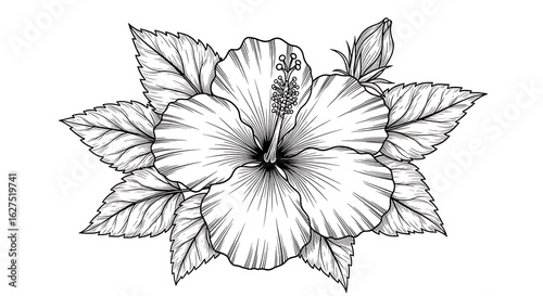 © JPG,Png,desing, Fototapeta premium Detailed hibiscus flower silhouette