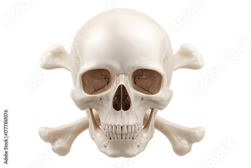 Fototapeta premium Detailed human skull with crossbones: anatomy and symbolism
