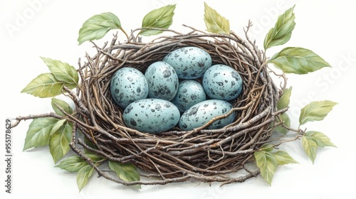 Obraz premium Detailed illustration of a Bald Eagle nest with eggs