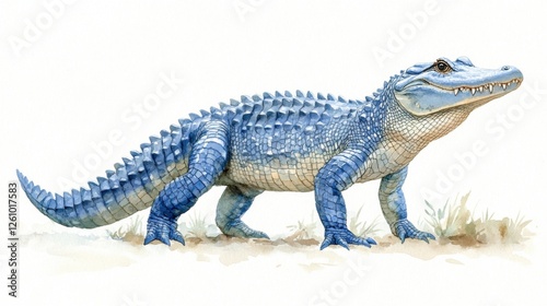 Naklejka premium Detailed Illustration of a Blue Crocodile Walking Across a Sandy Terrain in...