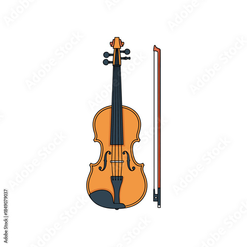 Fototapeta premium Detailed illustration of a classical violin and its bow on white background.