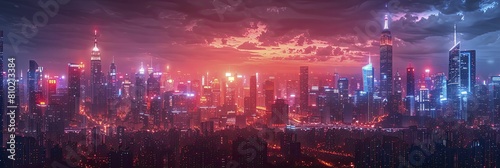 Fototapeta premium Detailed illustration of a cyber cityscape with intricate connectivity, ideal...