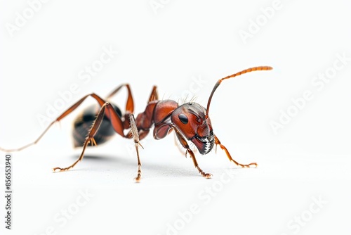 © Surachetsh, Naklejka premium Detailed illustration of a fearsome Fire Ant, showcasing its two mandibles, two antennae, and six legs, against a stark white backdrop.