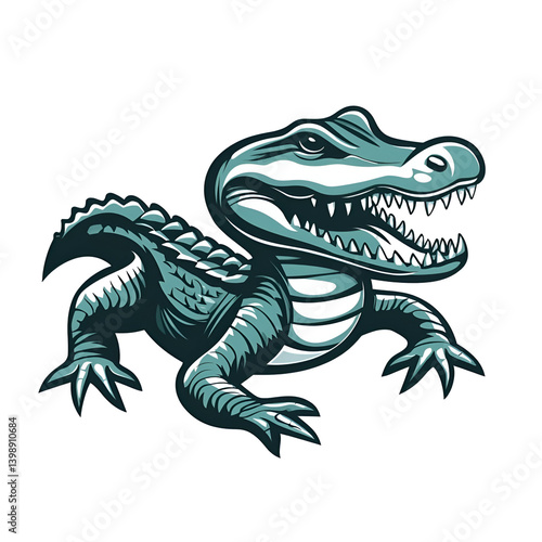Obraz premium Detailed Illustration of a Ferocious Crocodile with Sharp Teeth and Dynamic...