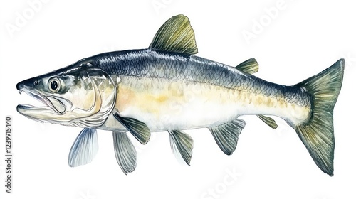 Fototapeta premium Detailed illustration of a fish, showcasing its scales, fins, and gills...