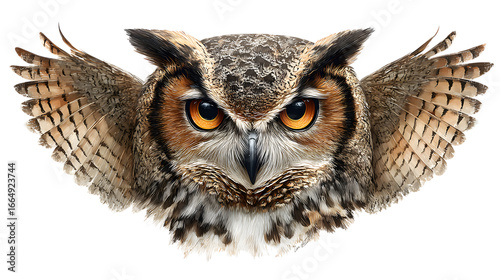 © Shariful, Fototapeta premium Detailed Illustration of a Great Horned Owl with Intense Gaze on a Transparent Background for Design and Educational Use