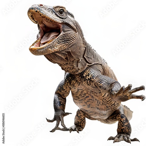 © Hungarian, Obraz premium Detailed illustration of a large scaly iguana with its mouth wide open