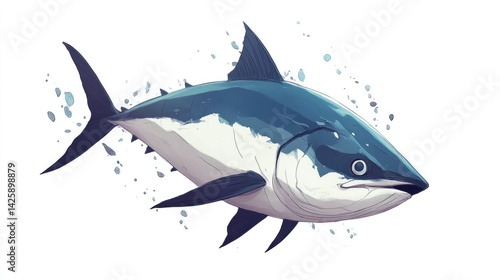 © muhammad, Obraz premium Detailed illustration of a large tuna fish, swimming, in profile view