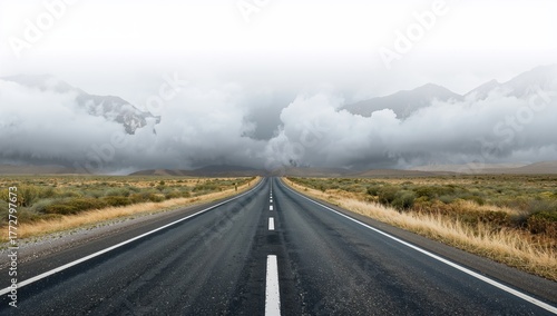 © vxnaghiyev, Naklejka premium Detailed illustration of a lone roadway with creative highway and road promotional concepts. Image of a cloudy highway ideal for travel and leisure.