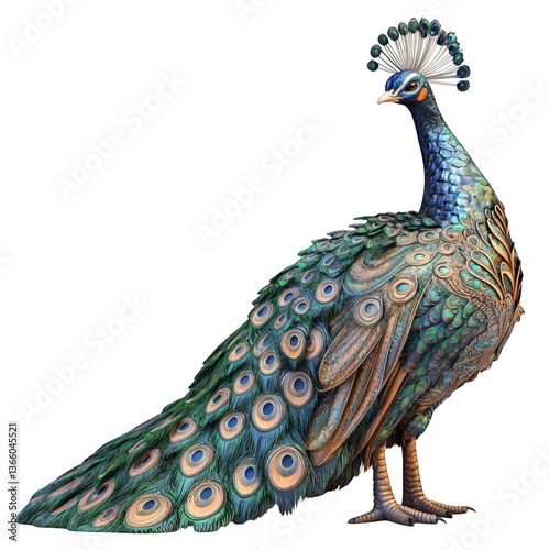 © GKHAN, Obraz premium Detailed Illustration of a Peacock Displaying its Feathers