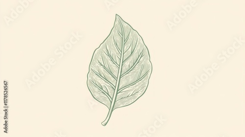© Erisna Yolanda, Obraz premium Detailed illustration of a single, light green leaf with prominent veins, isolated on a beige background.