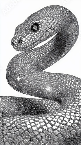 Fototapeta premium Detailed illustration of a snake with a sparkling, diamond-like texture.