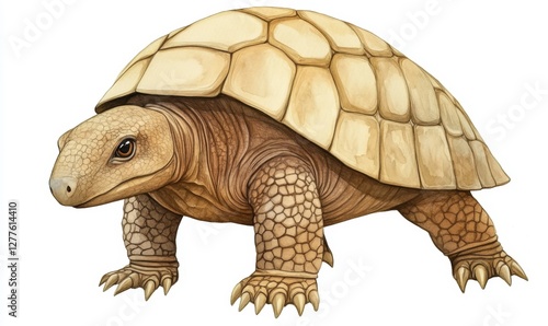 Fototapeta premium Detailed illustration of a tortoise walking on a white background, showcasing its unique shell and features