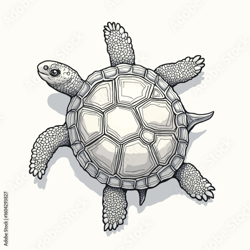 © mochammad, Fototapeta premium Detailed illustration of a turtle, viewed from above, showcasing its shell's intricate pattern and limb details.