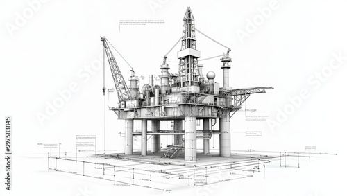 Obraz premium Detailed Illustration of an Oil Rig Structure