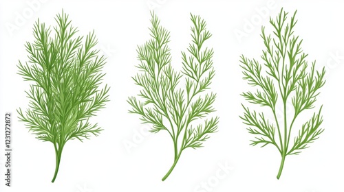 Fototapeta premium Detailed Illustration of Fresh Dill Leaves on White Background