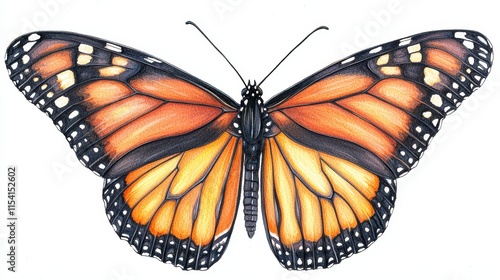 Fototapeta premium Detailed Illustration of Monarch Butterfly on White Background