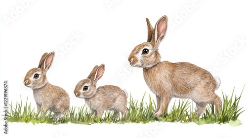 Obraz premium Detailed Illustration of Three Cute Rabbits in Green Grass Setting