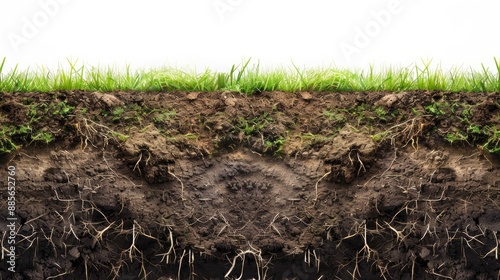 © Emin, Fototapeta premium Detailed image of grass roots and soil cross section empty space for teaching
