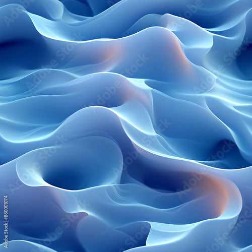 © Vladimir, Fototapeta premium Detailed image of soft, flowing wavy lines in a soothing blue gradient (tile)
