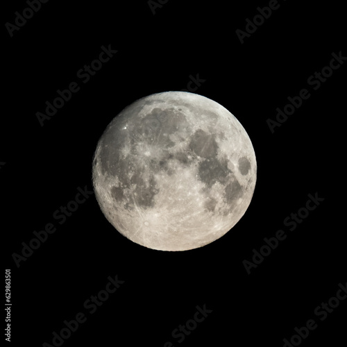 © Dmitrii Potashkin, Obraz premium Detailed image of the full moon isolated on black.
