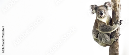 © Fxquadro, Obraz premium Detailed image showcasing a koala bear gripping a tree trunk, highlighting its natural behavior and textured coat